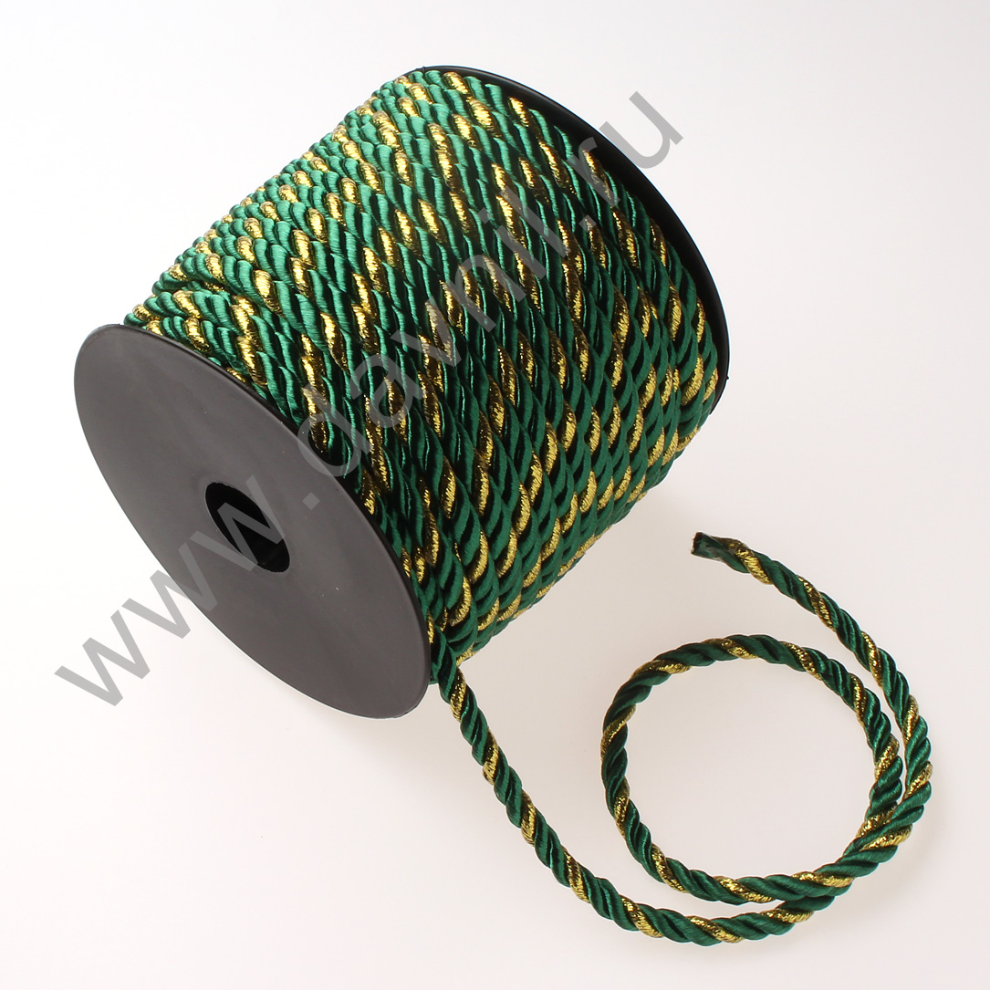 Шнур витой с золотым люрексом 5 мм 25 м изумрудный 35