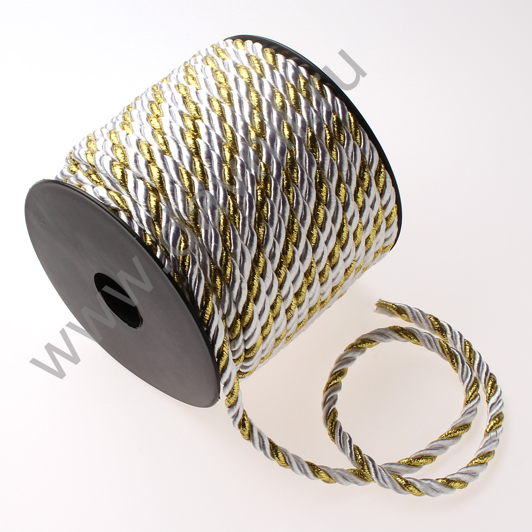 Шнур витой с золотым люрексом 5 мм 25 м белый 13