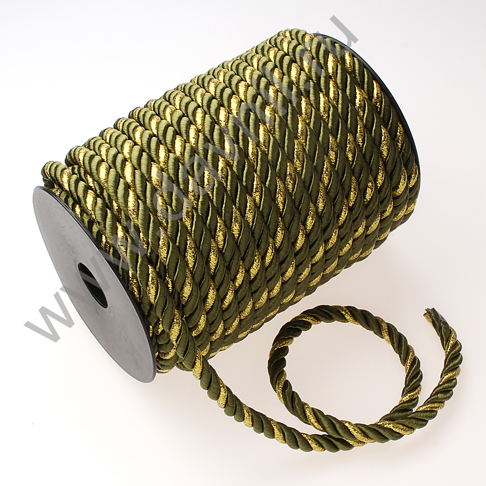 Шнур витой с золотым люрексом 8 мм 25 м хаки