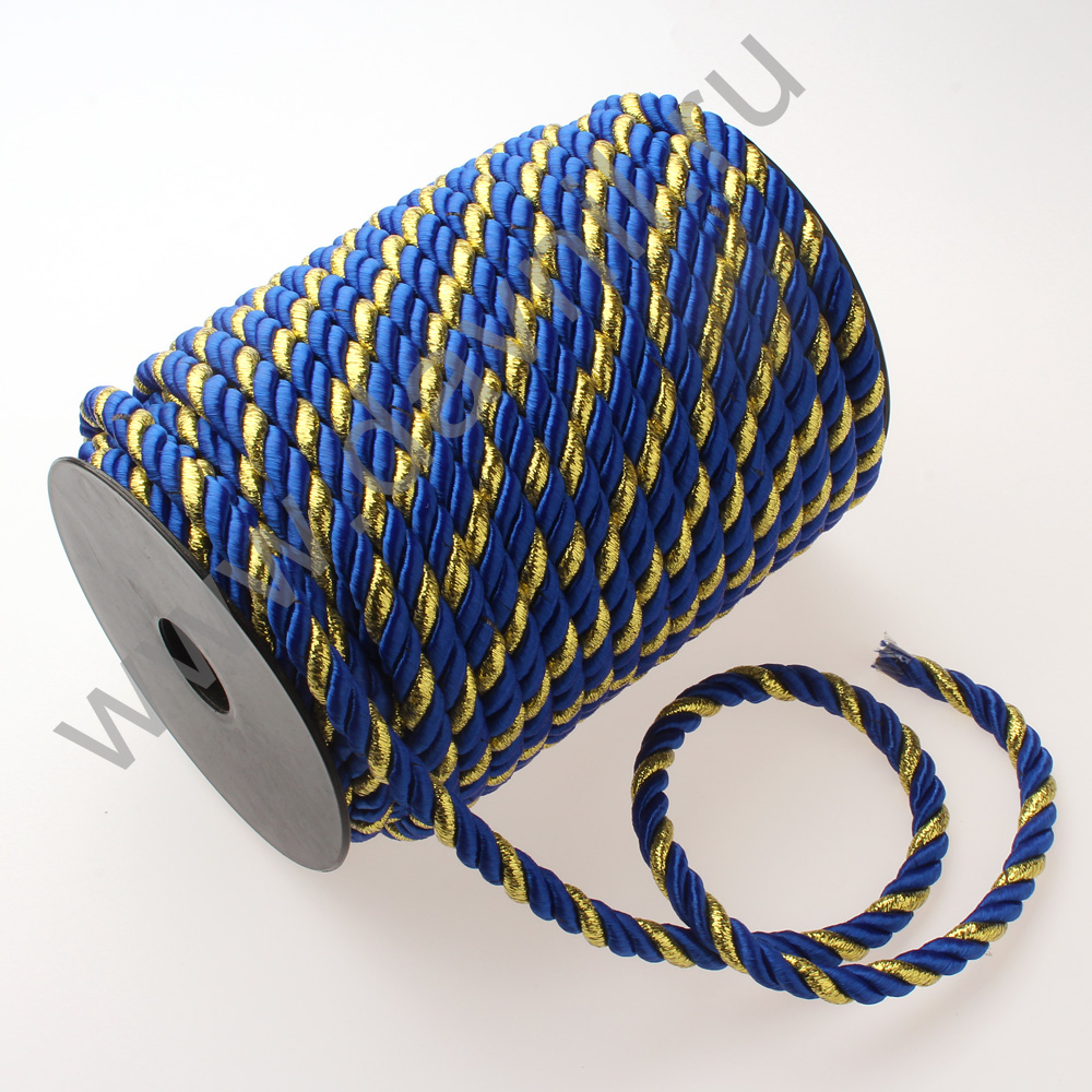 Шнур витой с золотым люрексом 8 мм 25 м синий 37