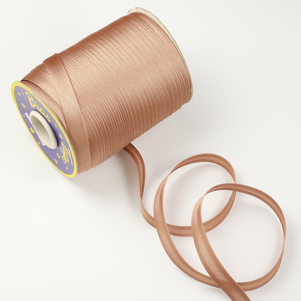 Косая бейка атласная 1,5 см 131 м коричневая 97395