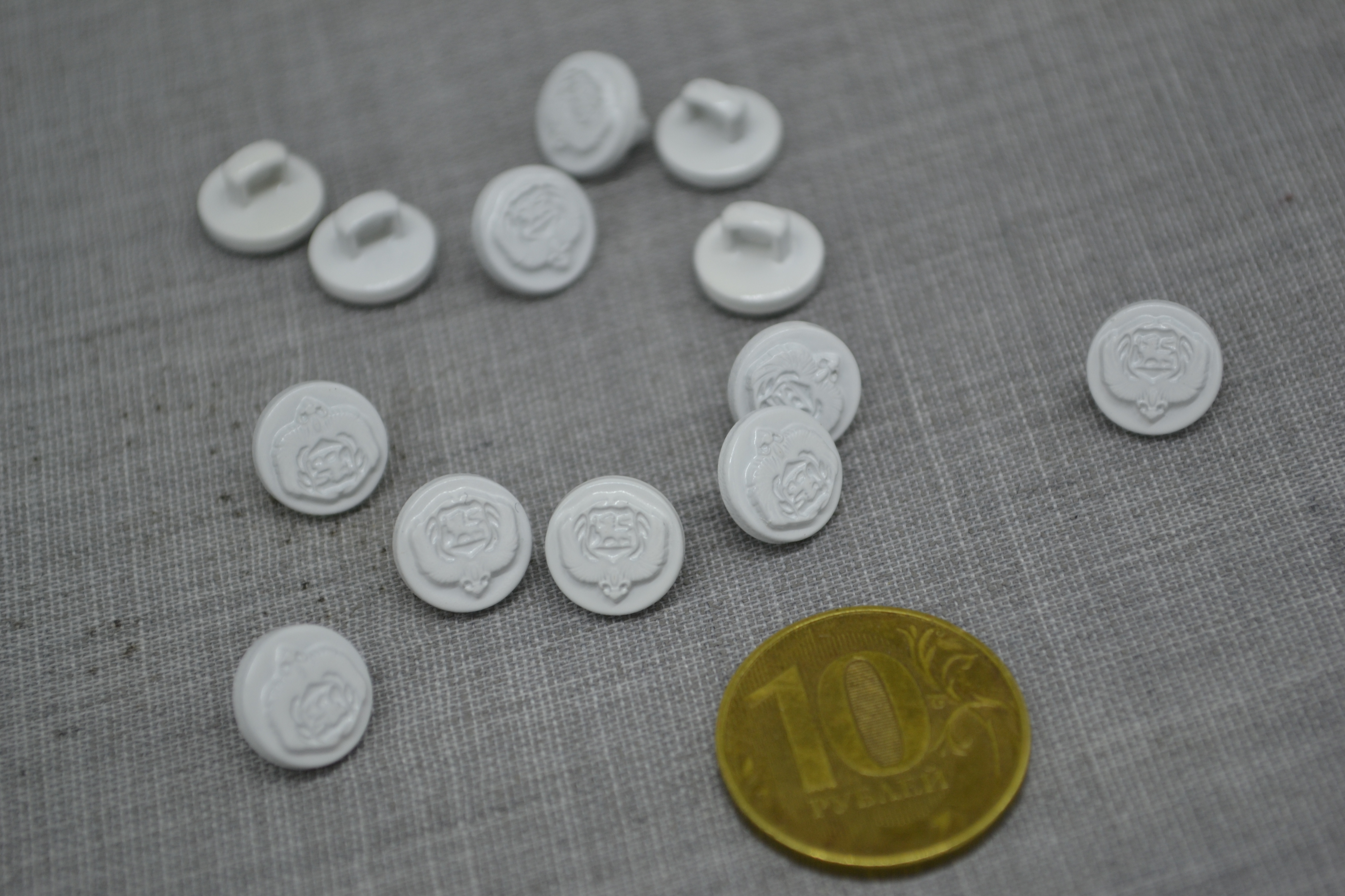 Пуговица 10 мм на ножке под металл белая с рисунком 50 шт