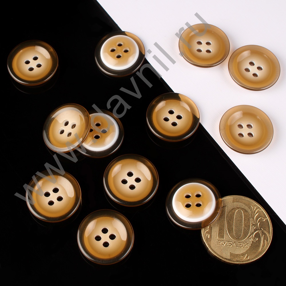 Пуговица 15 мм коричневая с белой оконтовкой 50 шт