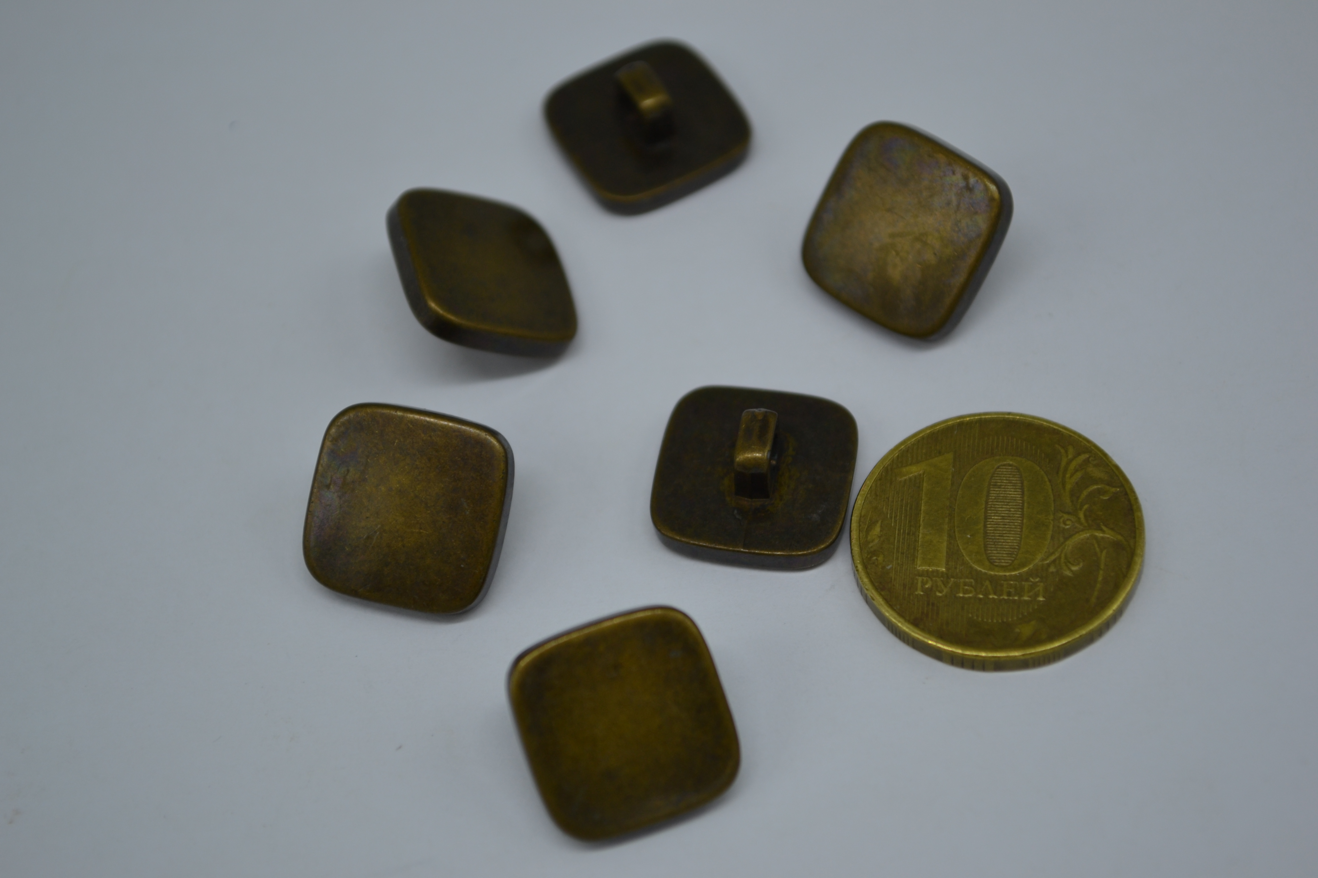 Пуговица 15 мм на ножке квадрат под металл бронза 20 шт