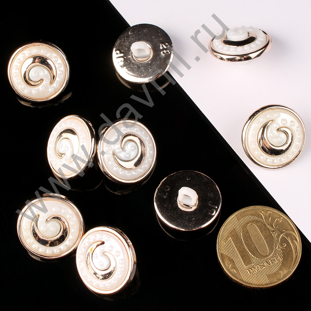 Пуговица 18 мм на ножке белая в золотой оправе 20 шт