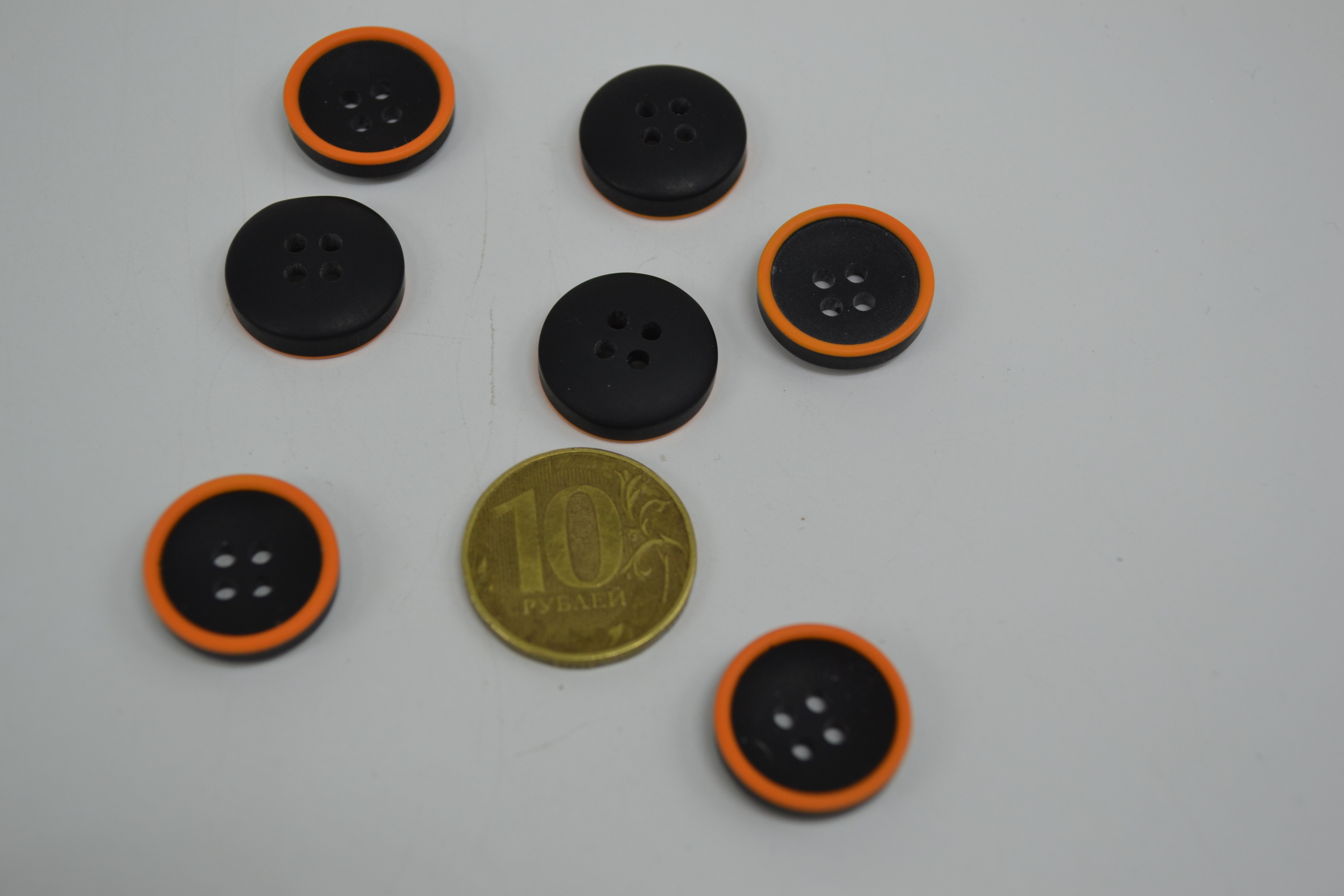Пуговица 18 мм чёрная с оранжевым ободком 20 шт