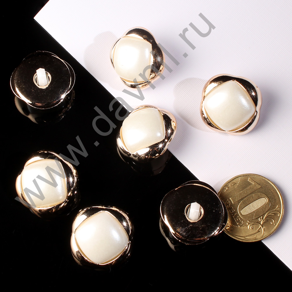 Пуговица 20 мм на ножке белый жемчуг в золотой оправе 20 шт