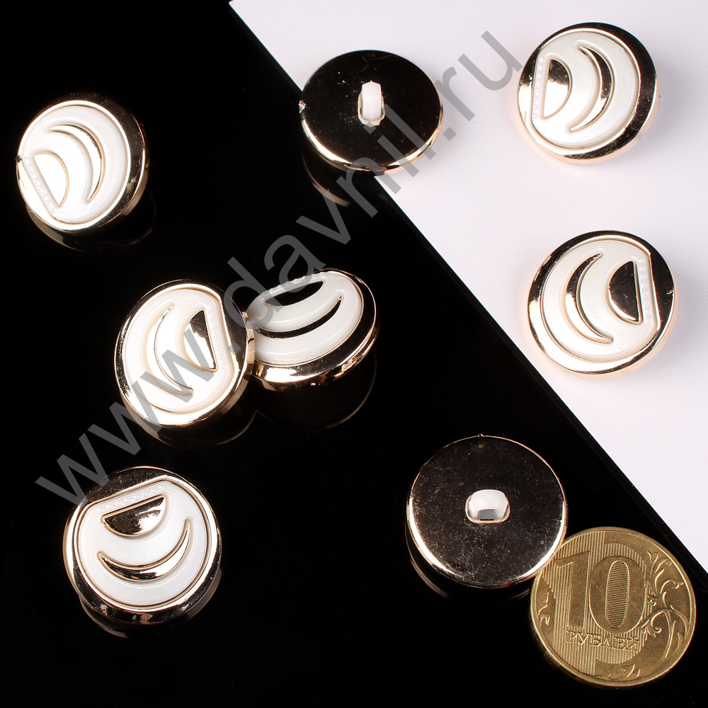 Пуговица 22 мм на ножке белая в золотой оправе 20 шт