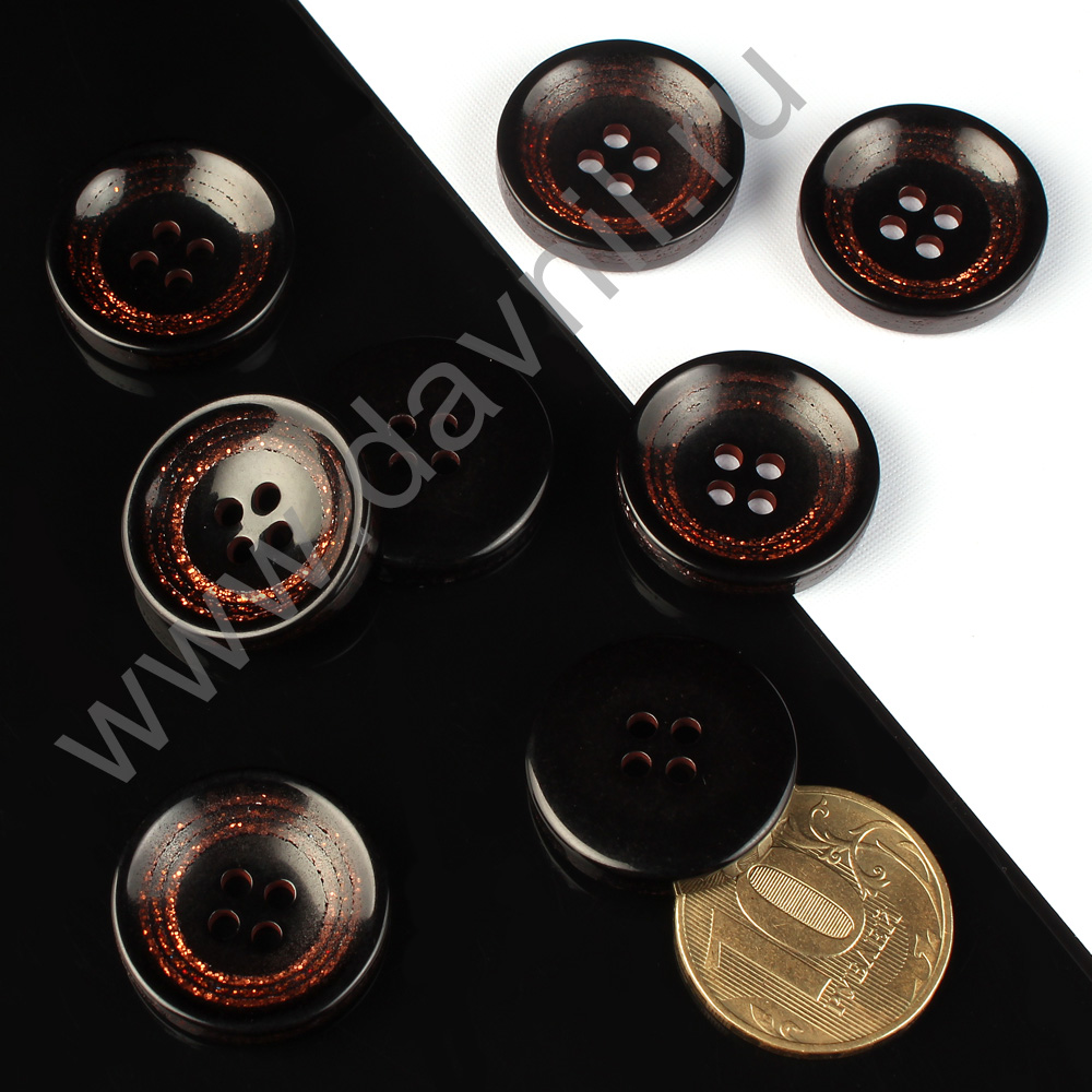 Пуговица 22 мм чёрная с коричневым глиттером 20 шт
