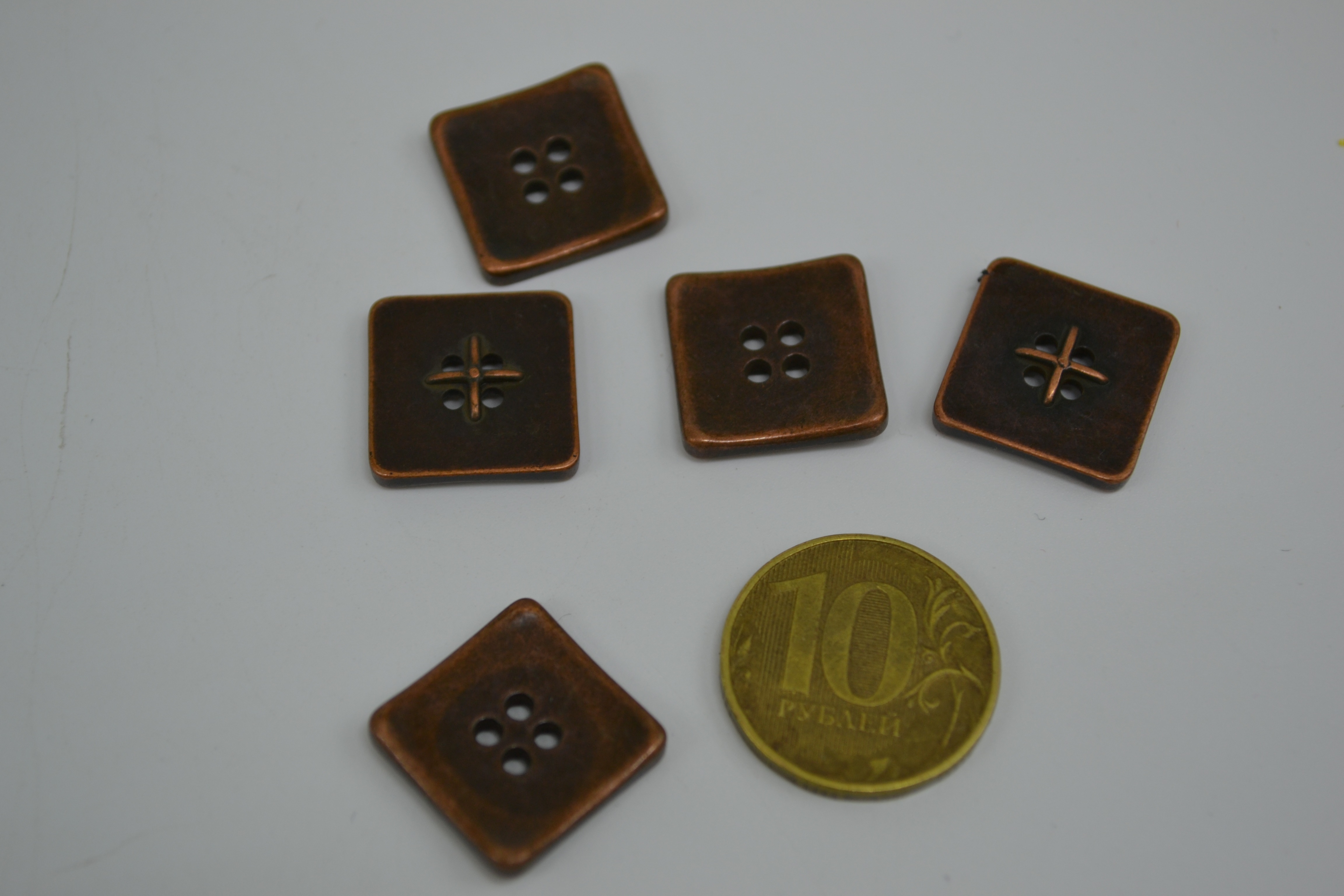Пуговица 22 мм квадрат под металл медь 10 шт