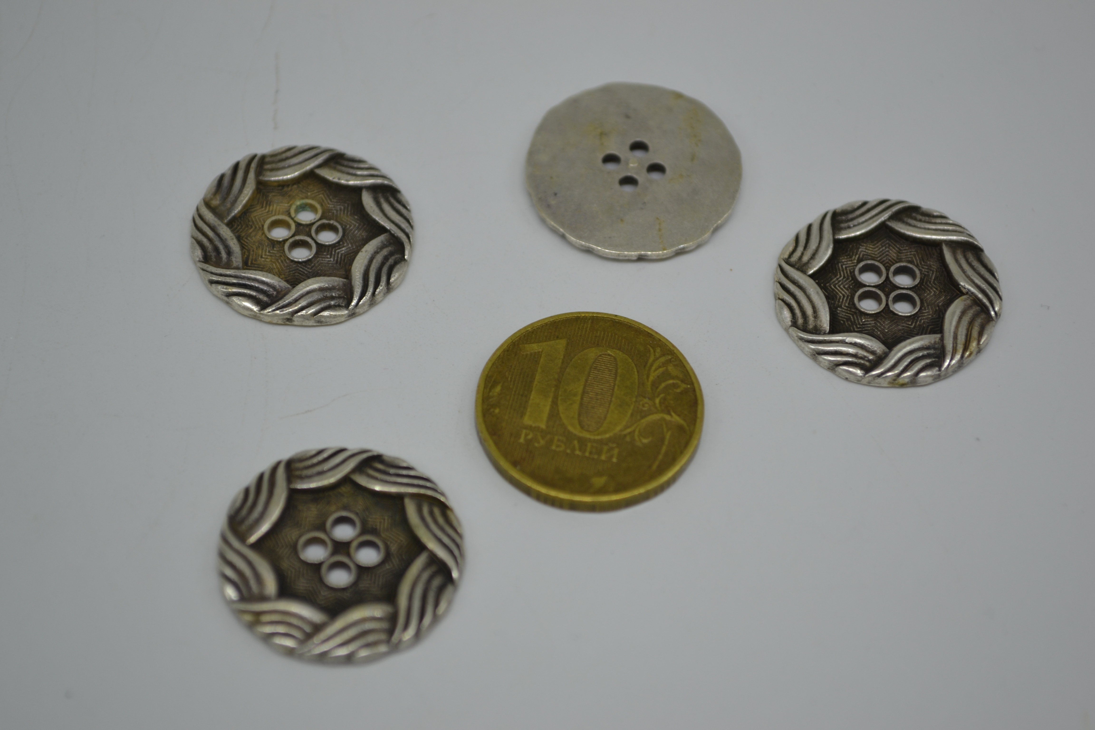 Пуговица 22 мм косичка металлическая тёмное серебро 10 шт