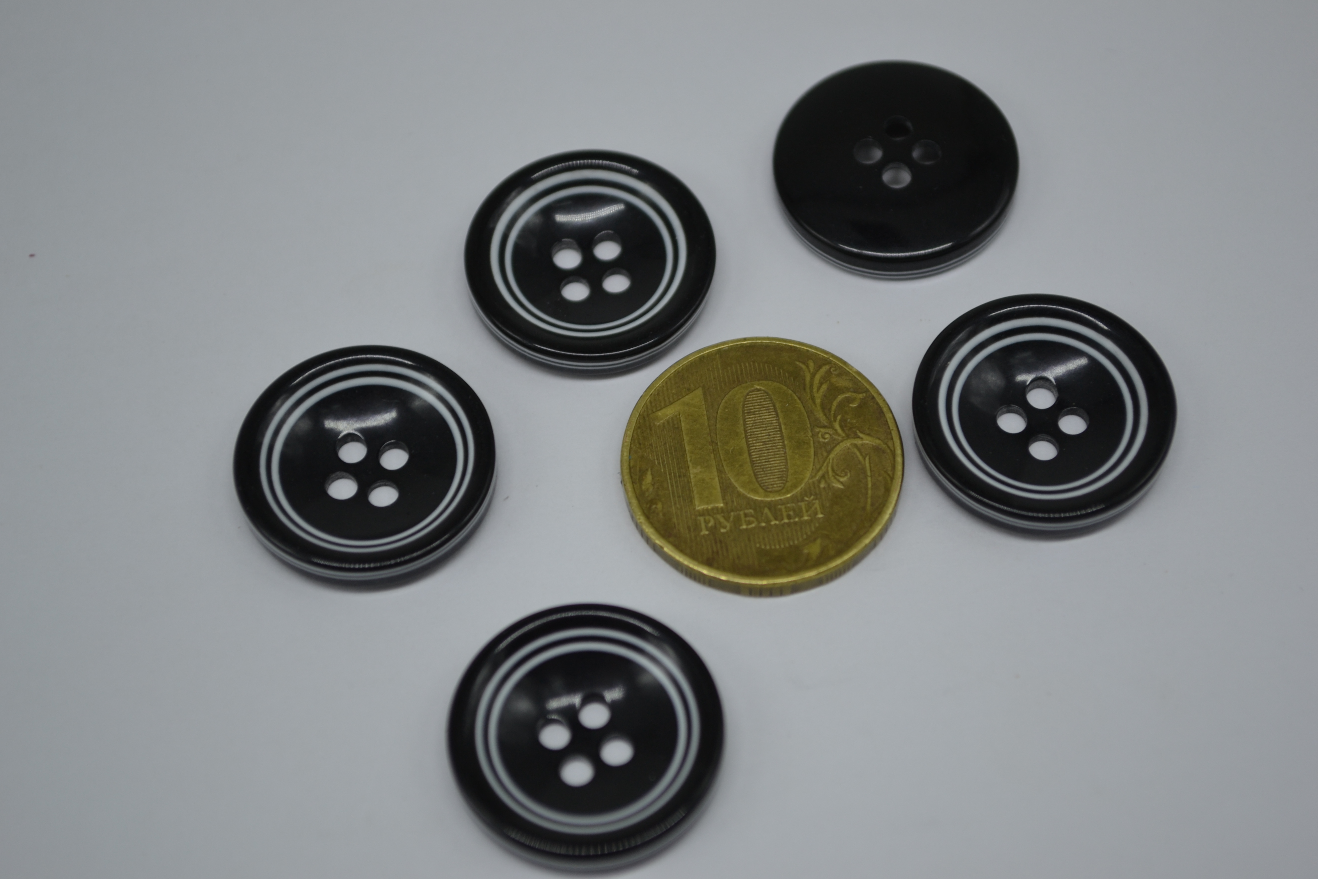 Пуговица 23 мм чёрная с белым ободком 10 шт