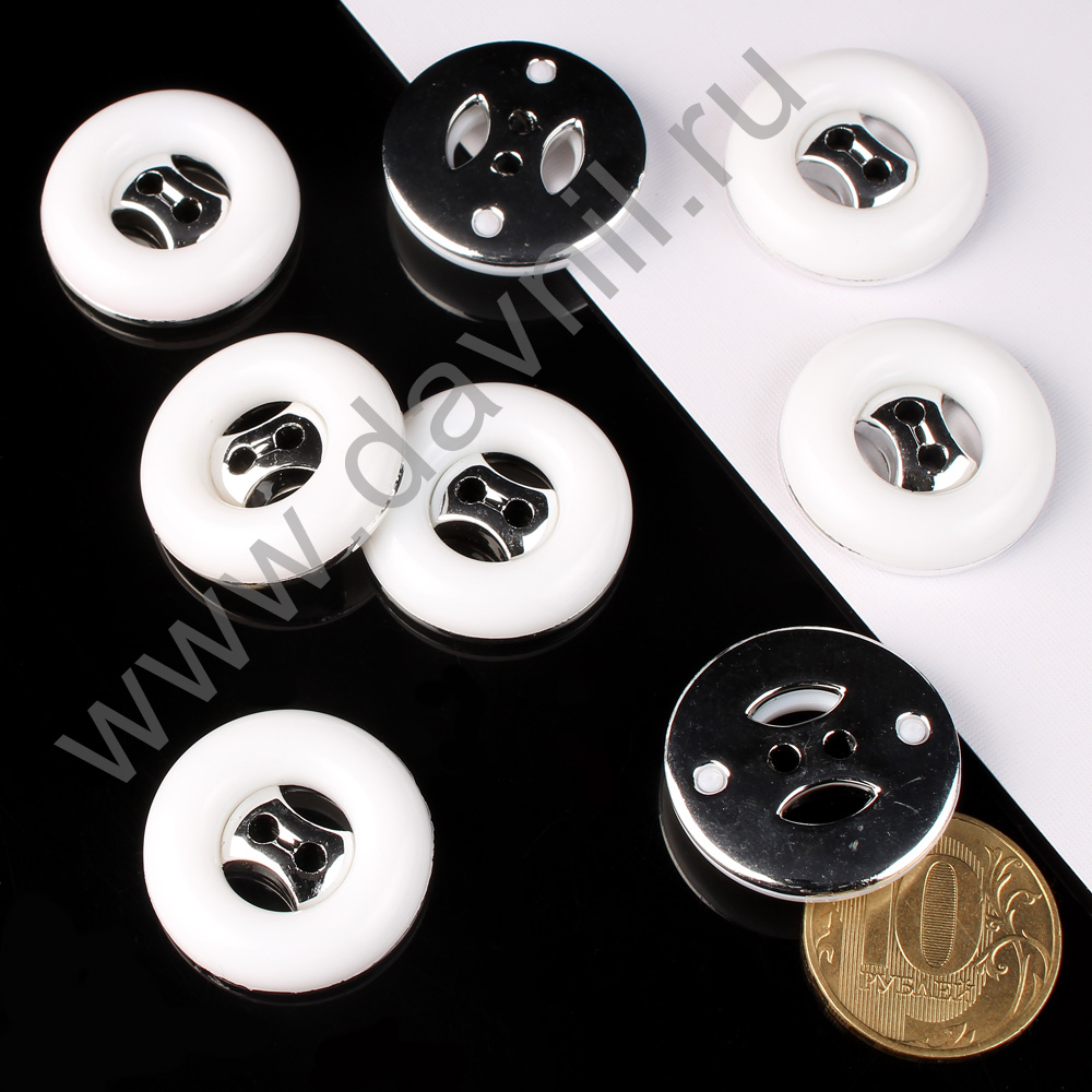 Пуговица 25 мм белое кольцо на серебре 10 шт