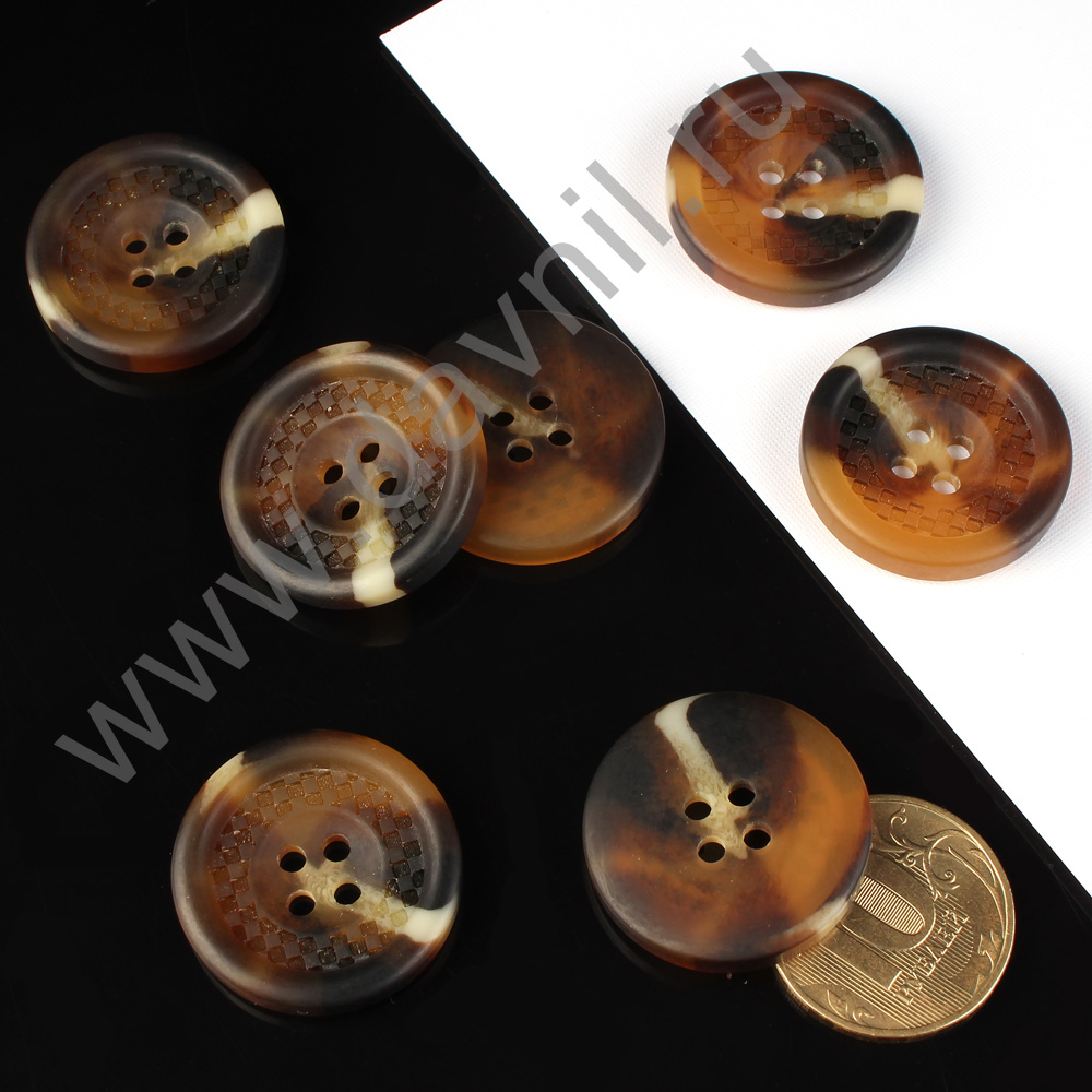 Пуговица 25 мм коричневая с разводами 10 шт