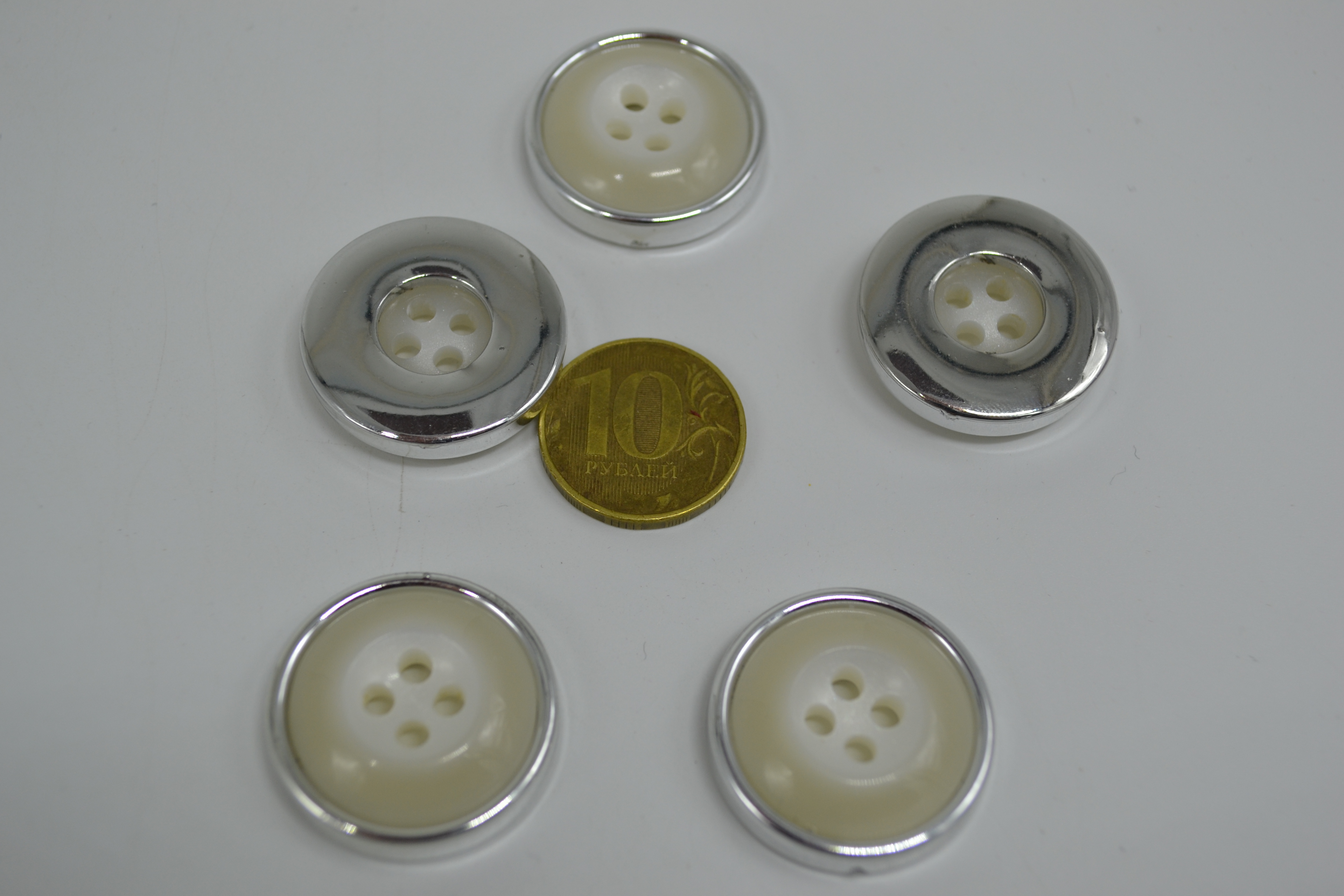 Пуговица 28 мм белая в серебряном кольце 10 шт