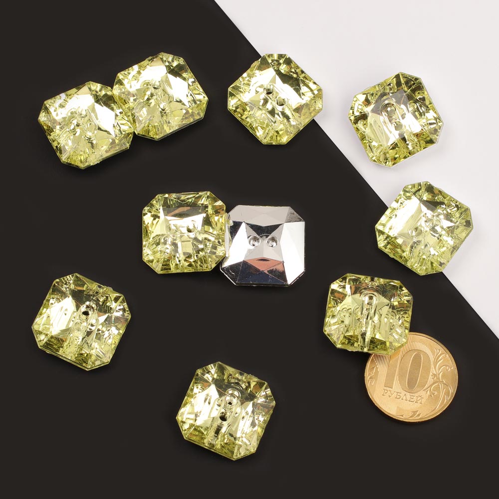 Пуговицы-стразы акрил "Квадрат" 20 мм 10 шт салатовые