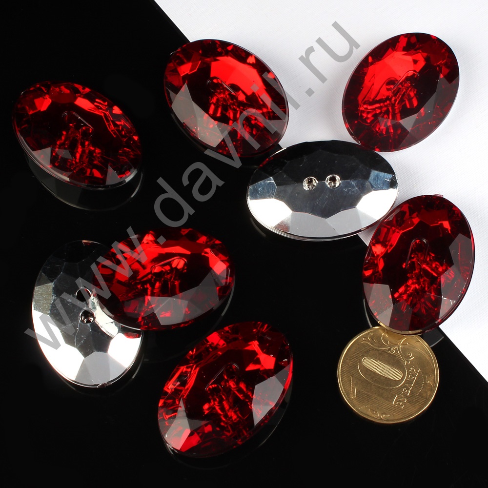 Пуговицы-стразы акрил "Овал" 25*17 мм 10 шт бордовые 2