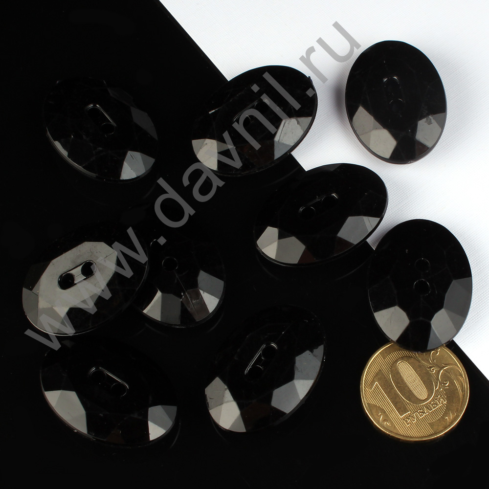 Пуговицы-стразы акрил "Овал" 22*30 мм 100 шт чёрные