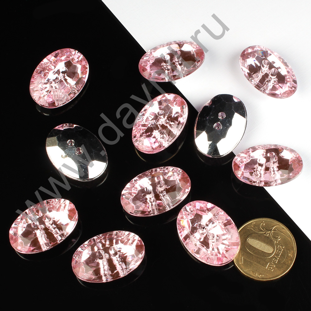 Пуговицы-стразы акрил "Овал" 25*17 мм 200 шт розовые