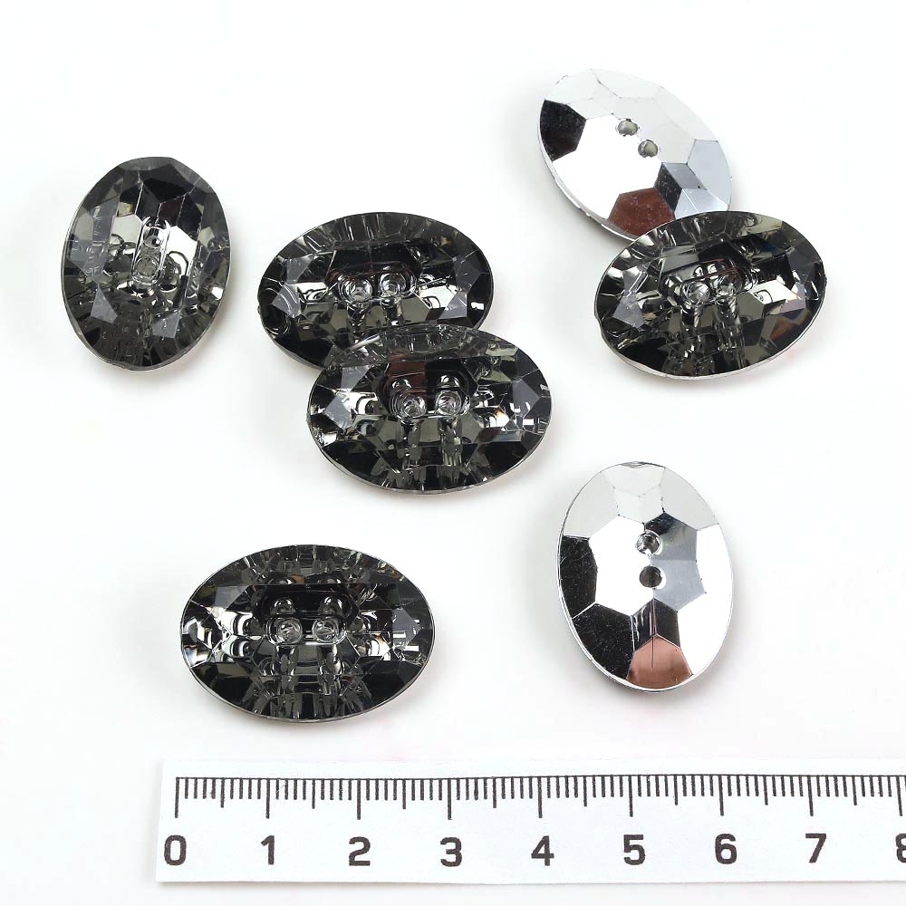 Пуговицы-стразы акрил "Овал" 28*20 мм 100 шт серые