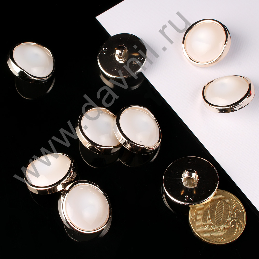 Пуговица 20 мм на ножке белый жемчуг в золотой оправе 200 шт