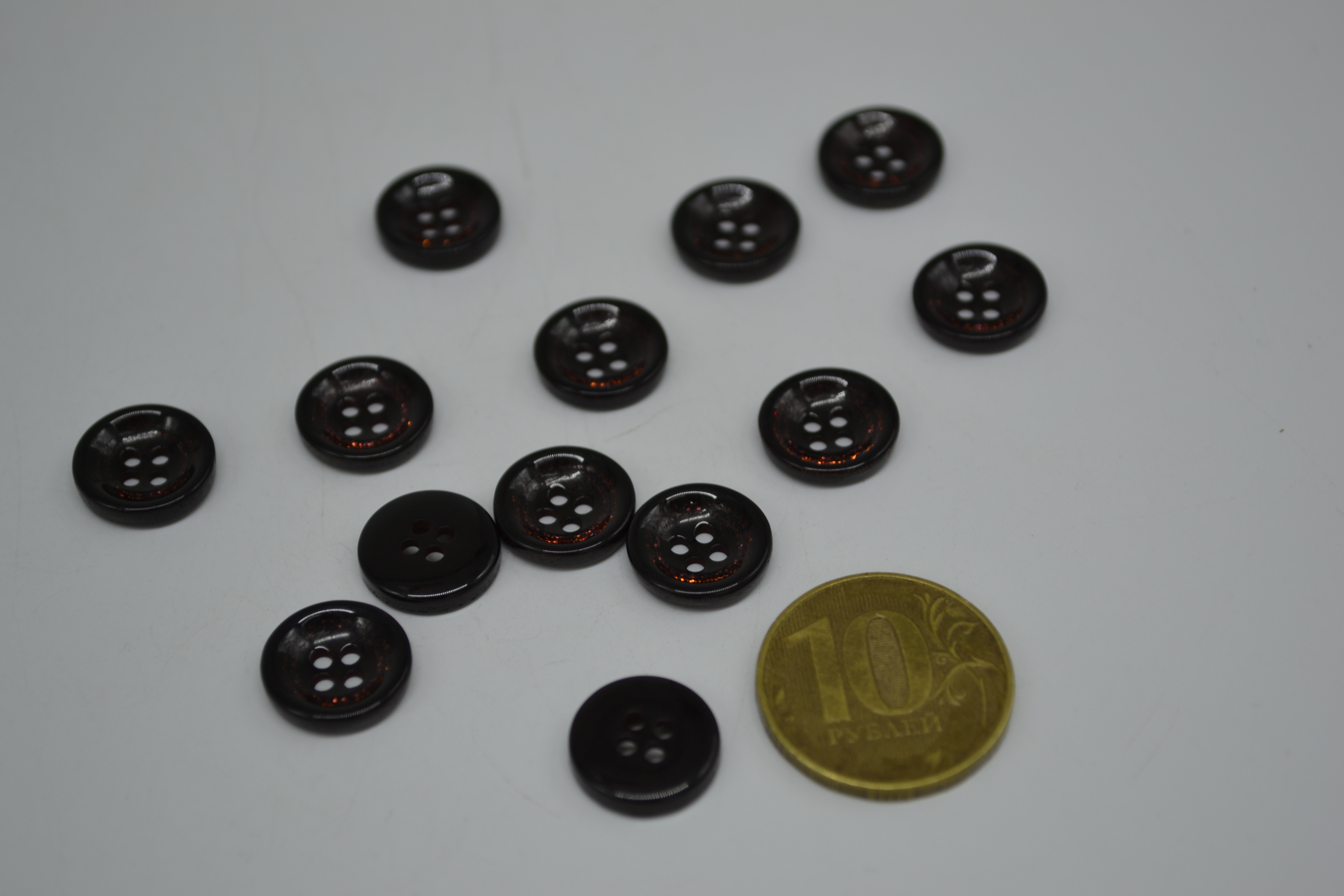 Пуговица 12 мм чёрная с коричневым глиттером 1000 шт