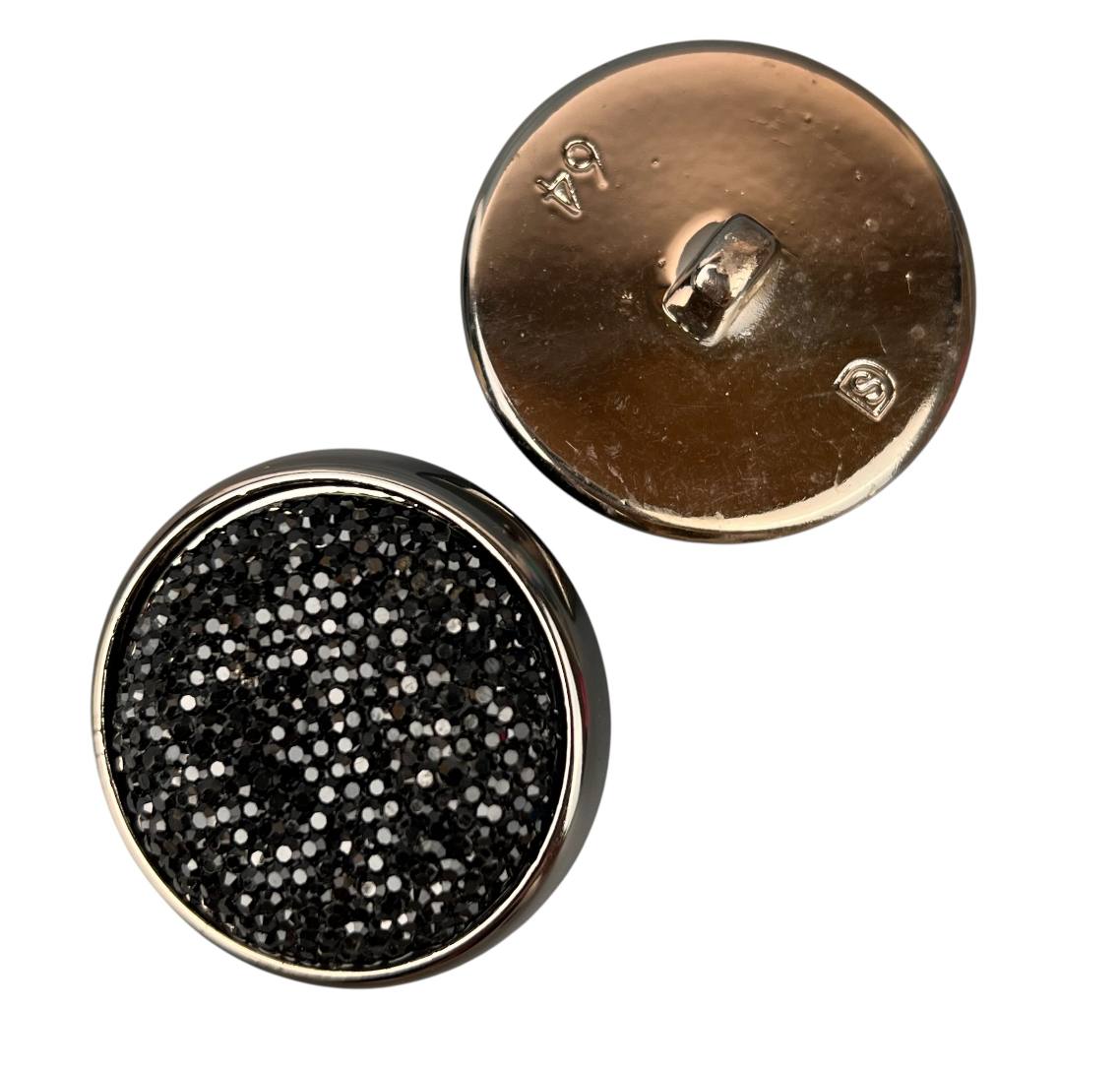 Пуговица 40 мм на ножке чёрная страза в тёмном серебре 12 шт
