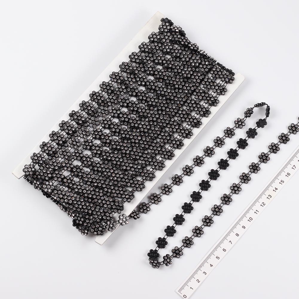 Стразы на нити ромашка 10 ярдов черные