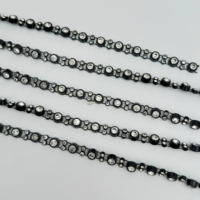 Стразы на нити в чёрной пластиковой оправе 1 м