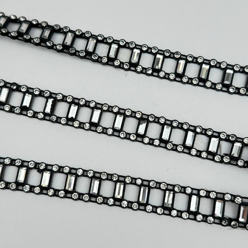 Стразы на нити прямоугольник в чёрной оправе 1 м