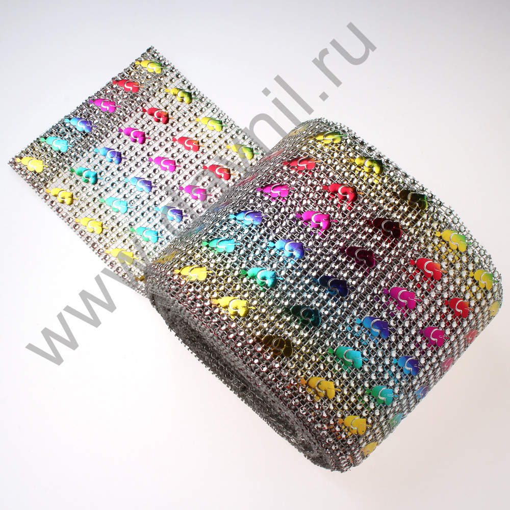Стразы обманки двойные сердца 24 ряда 10 ярдов цветные