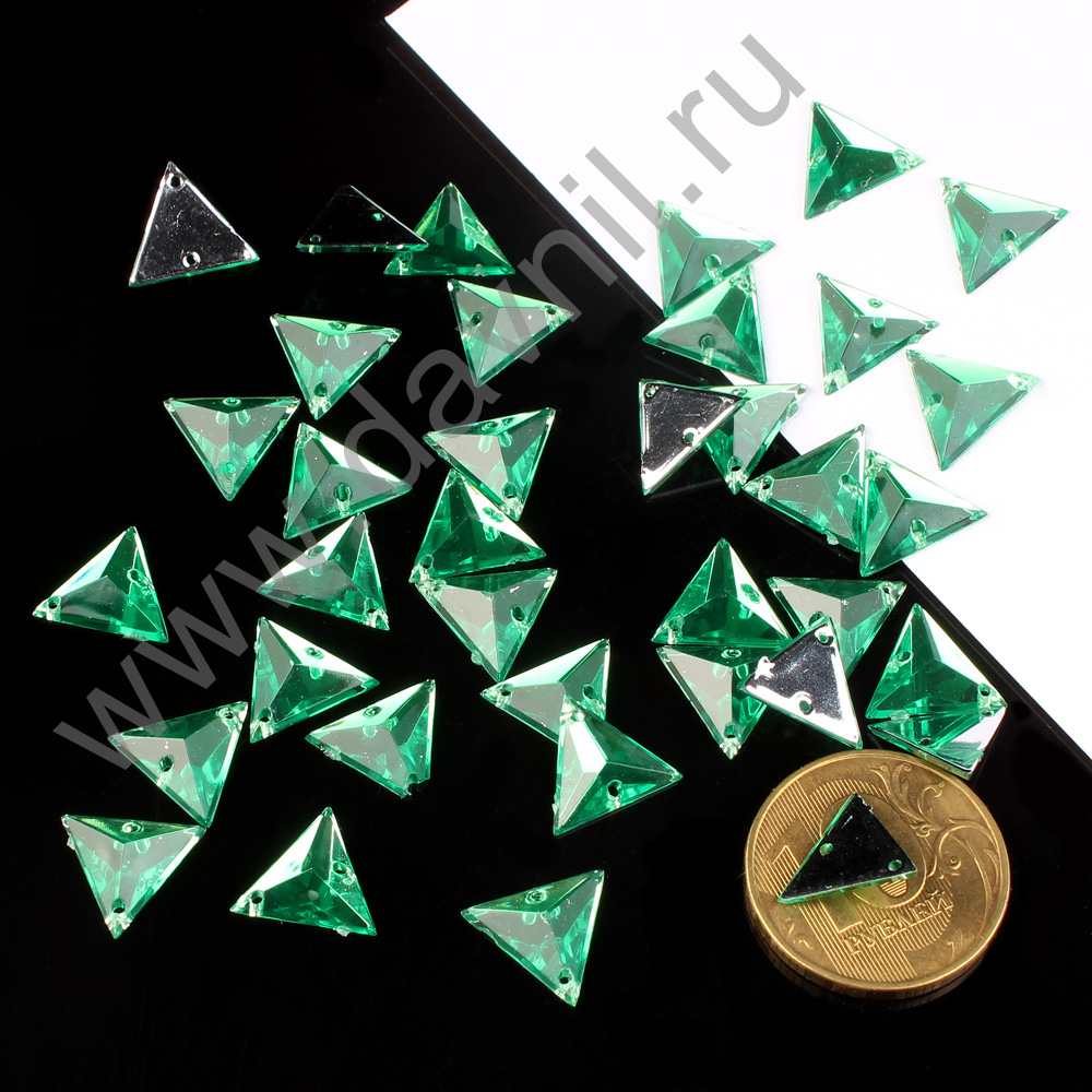 Стразы пришивные акрил "Треугольник" 12 мм 1000 шт зелёные 9