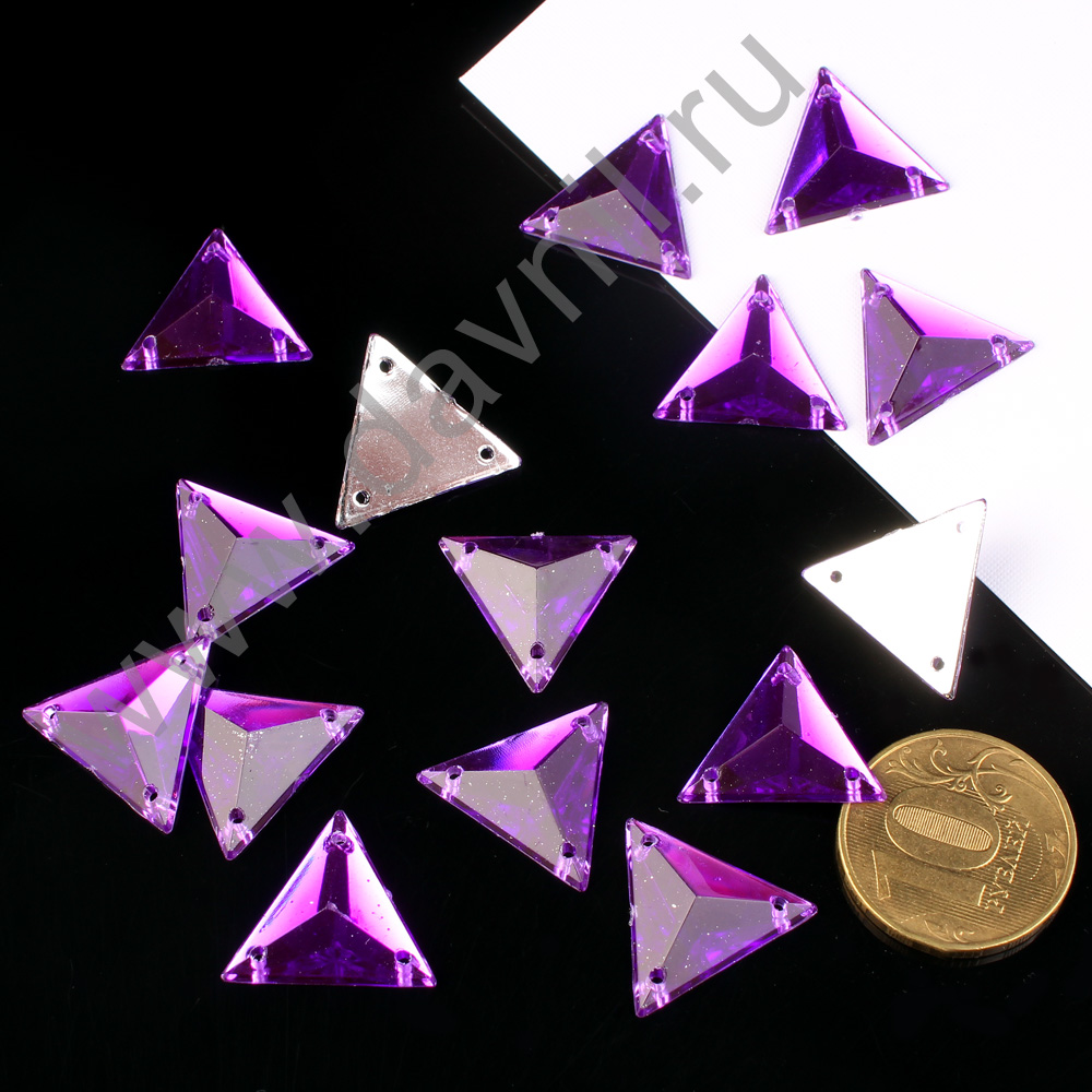 Стразы пришивные акрил "Треугольник" 19 мм 100 шт сиреневые