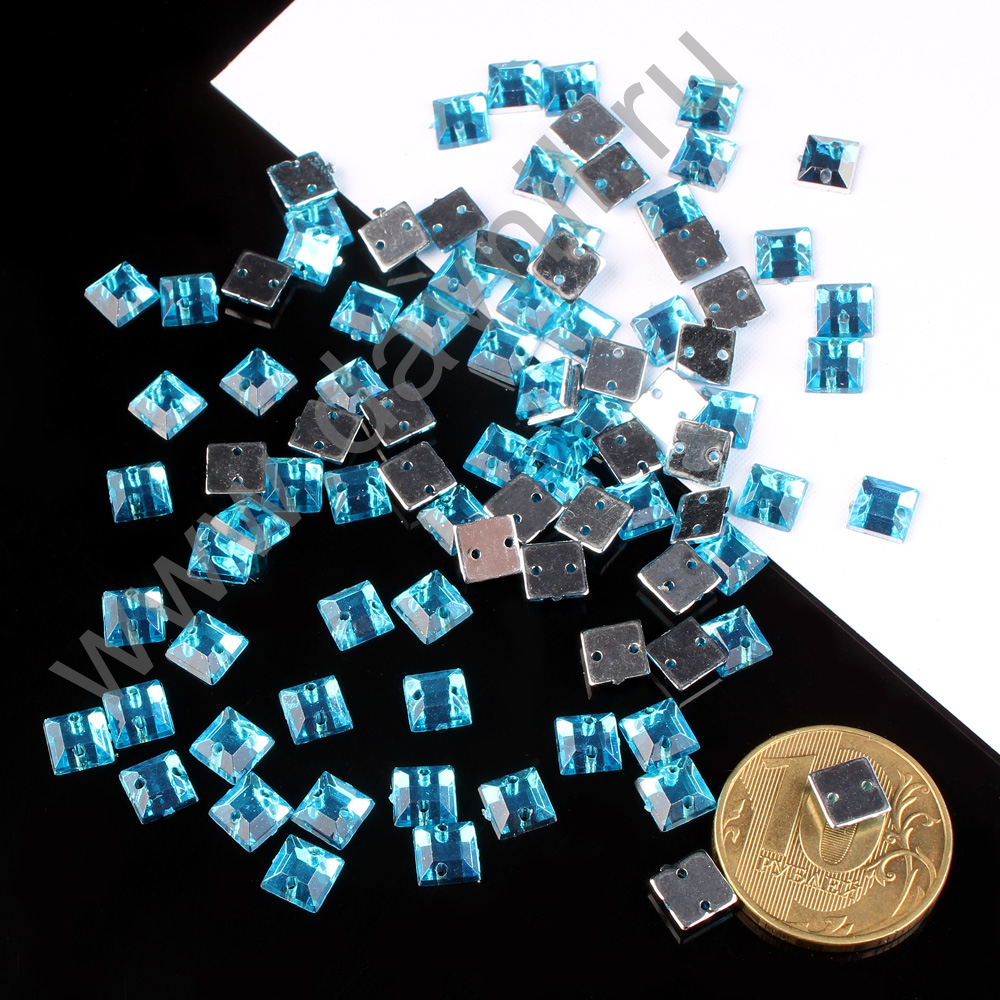 Стразы пришивные акрил "Квадрат" 6 мм 5000 шт голубые 32