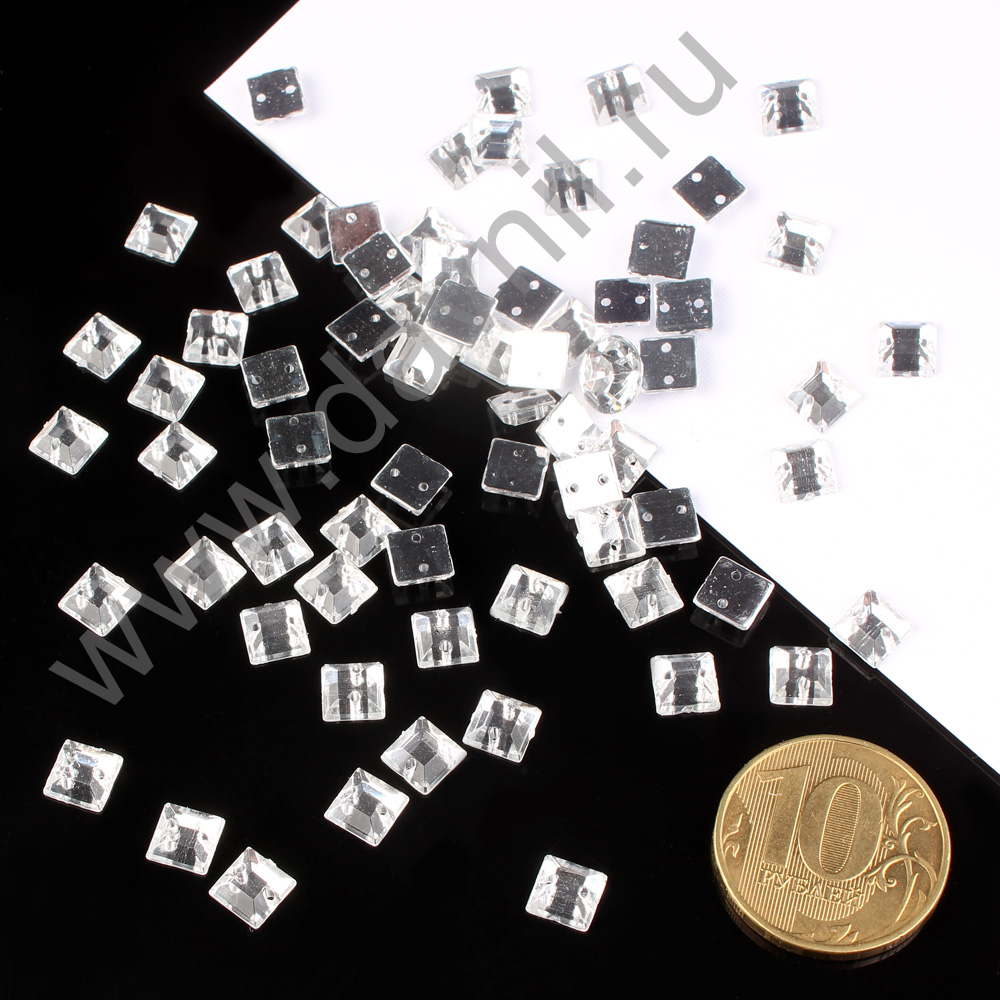 Стразы пришивные акрил "Квадрат" 6 мм 5000 шт белые 1