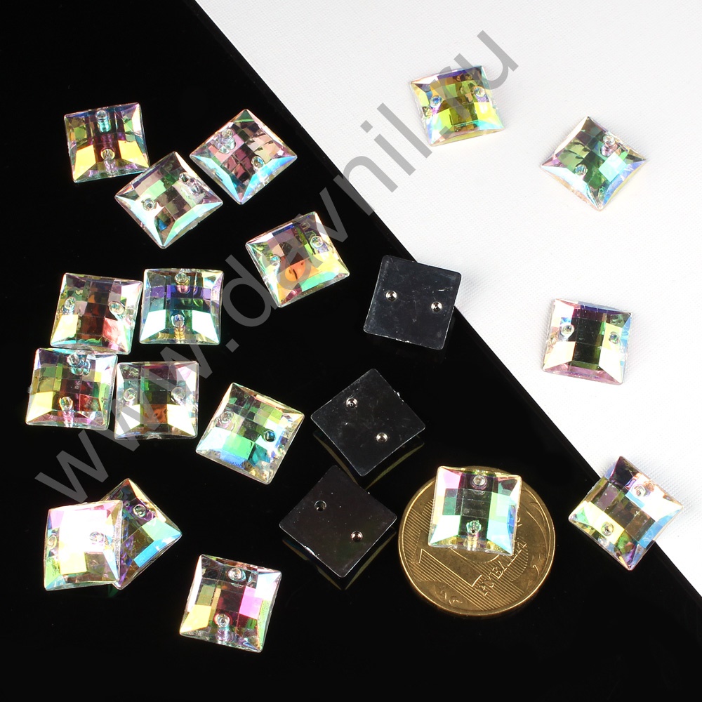 Стразы пришивные акрил "Квадрат" 6 мм 5000 шт белые АВ