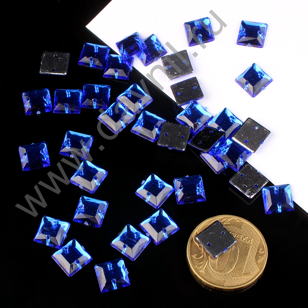 Стразы пришивные акрил "Квадрат" 8 мм 2000 шт синие 7