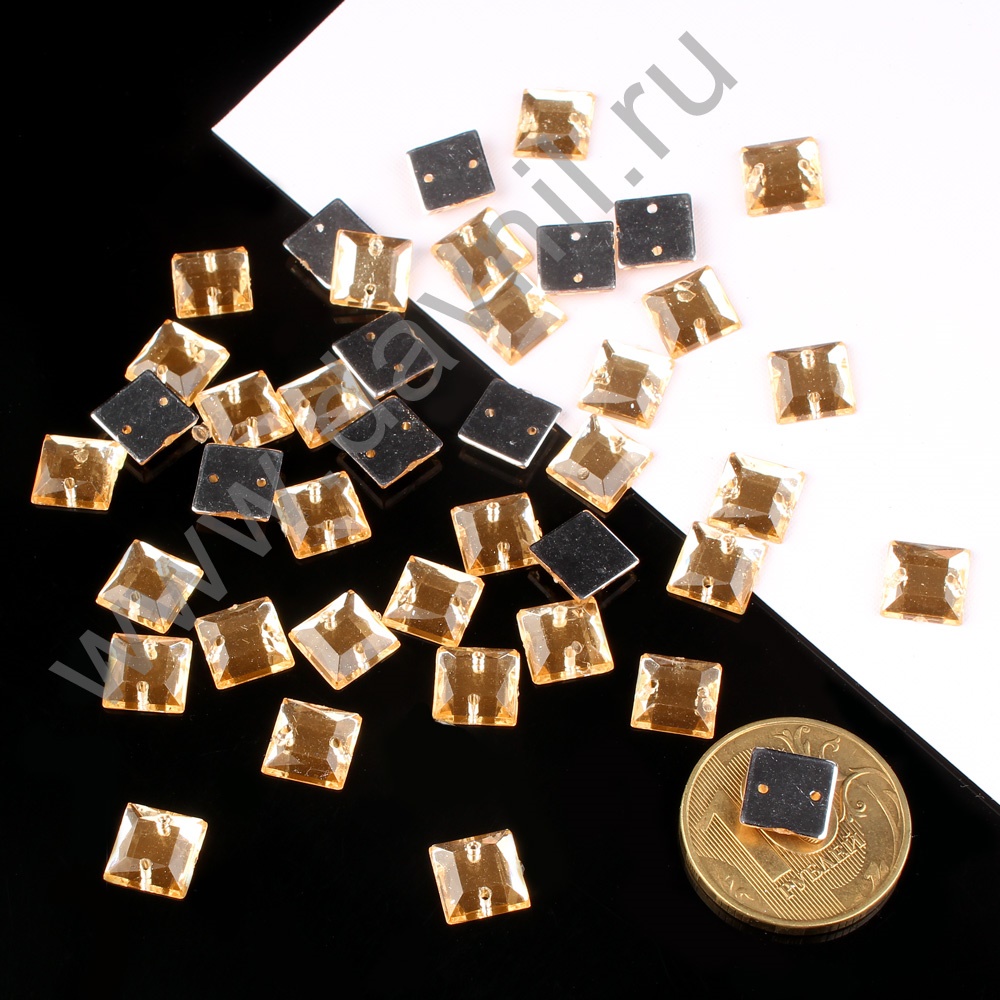 Стразы пришивные акрил "Квадрат" 20 мм 200 шт светлое золото12