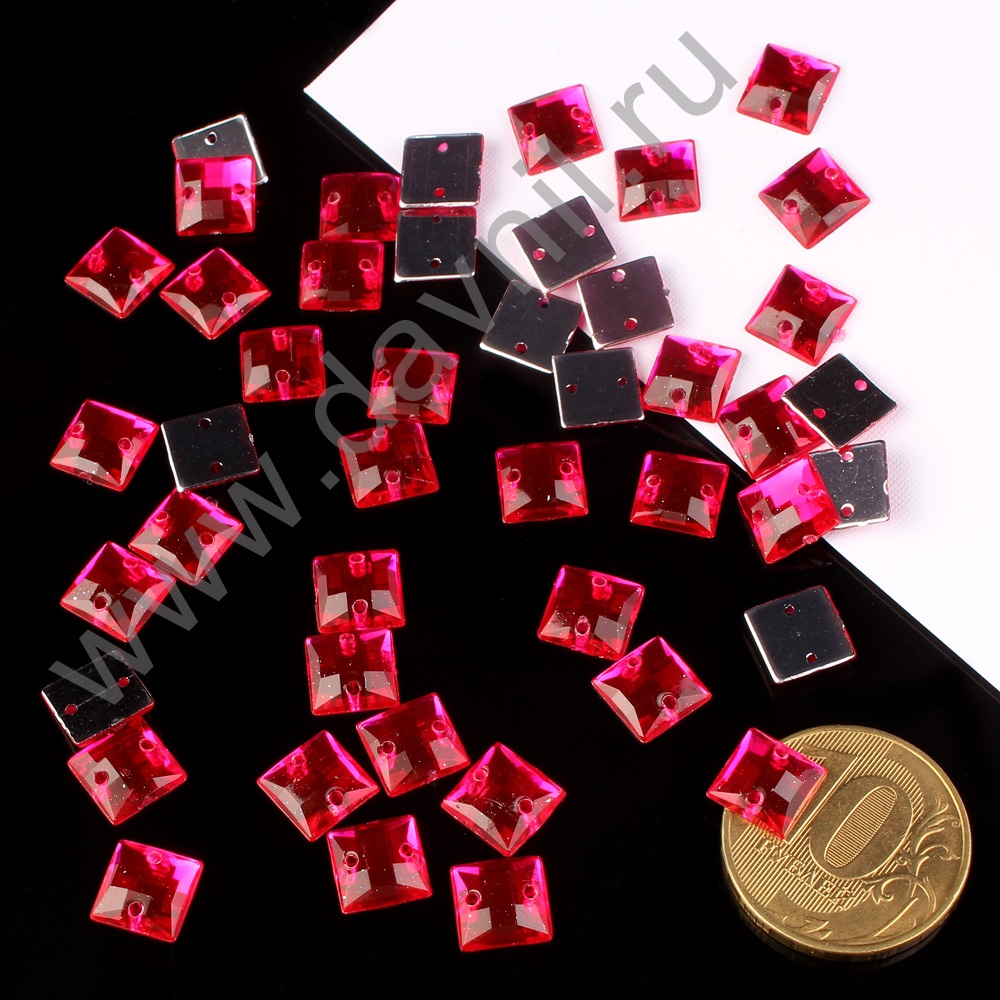 Стразы пришивные акрил "Квадрат" 12 мм 1000 шт фуксия 38