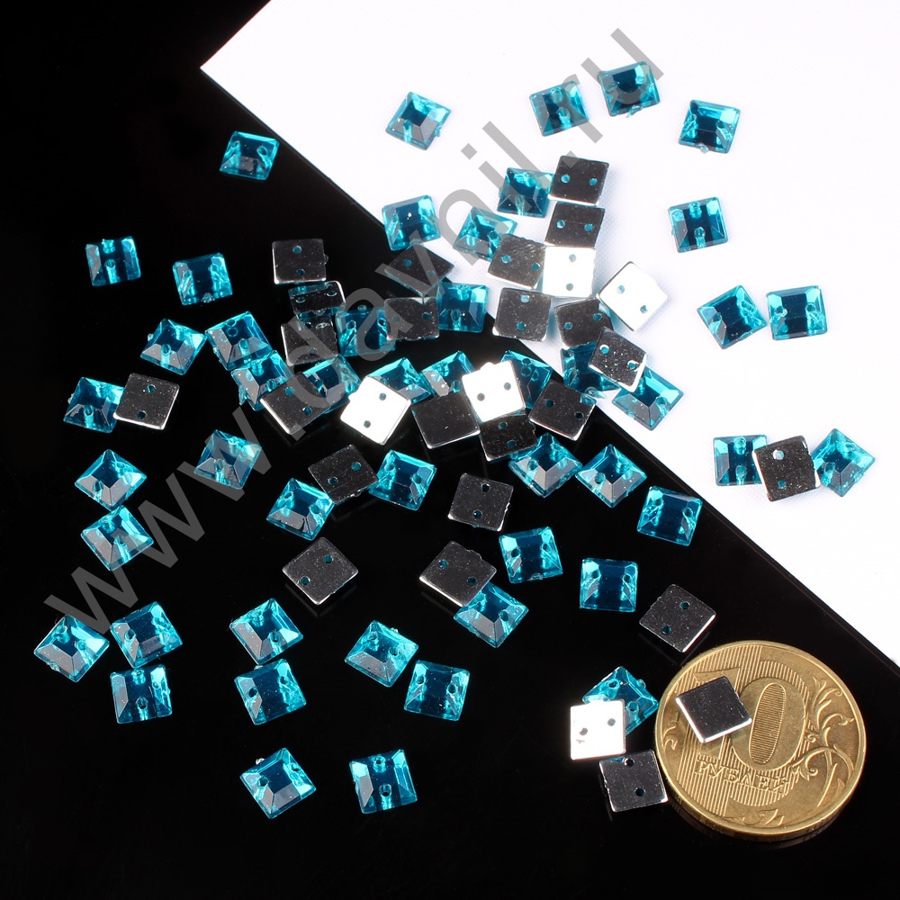 Стразы пришивные акрил "Квадрат" 10 мм 2000 шт бирюзовые 28