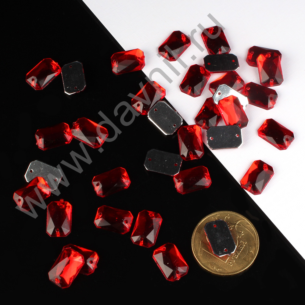 Стразы пришивные акрил "Многогранник" 8*12 мм 2000 шт красные 6