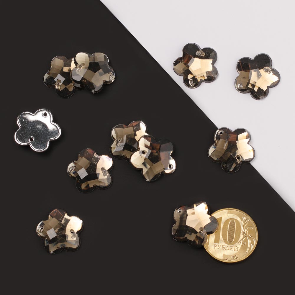 Стразы пришивные акрил "Цветок" 20 мм 200 шт серые