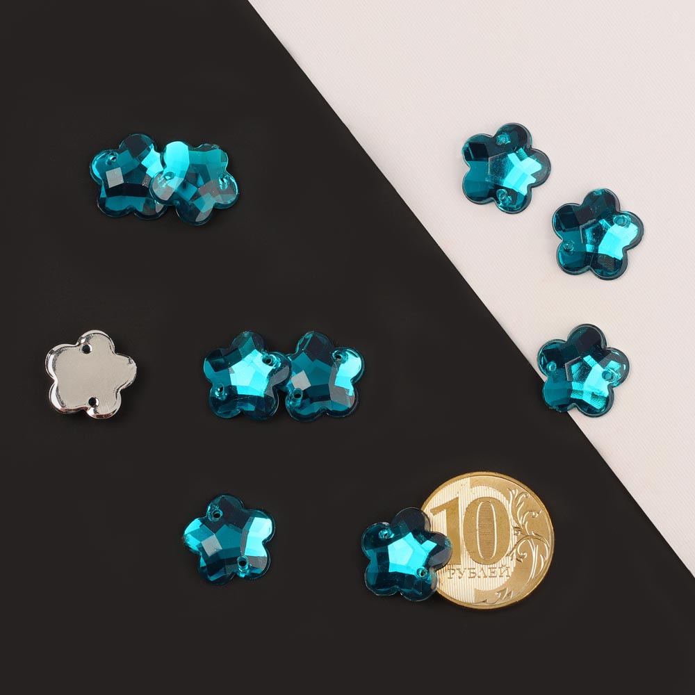 Стразы пришивные акрил "Цветок" 15 мм 500 шт бирюзовые