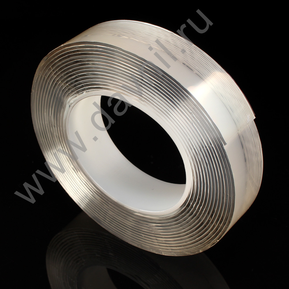 Многоразовая сверхсильная клейкая лента (нано-скотч), обе стороны которой – липкие. Она предназначена для надежного крепления каких-либо двух предметов. Данный вид скотча в случае загрязнения, прекрасно моется под водой, сохраняя свои клеевые свойства. Не имеет запаха и абсолютно прозрачен.