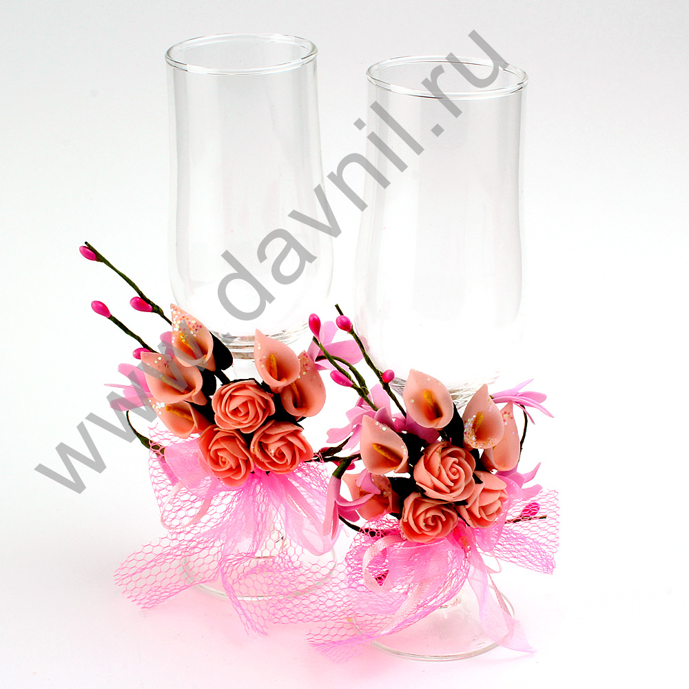Бокалы свадебные 2 шт. с розовым цветком