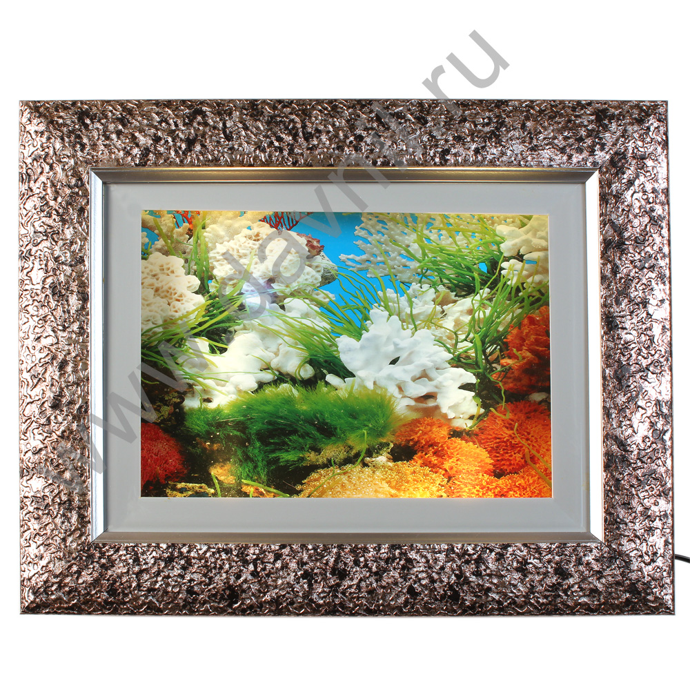 Настенный аквариум - с фоновой светодиодной подсветкой ссоздают иллюзию аквариума. Эта картина с часами станет отличным аксессуаром в вашем доме, а также достойным подарком.