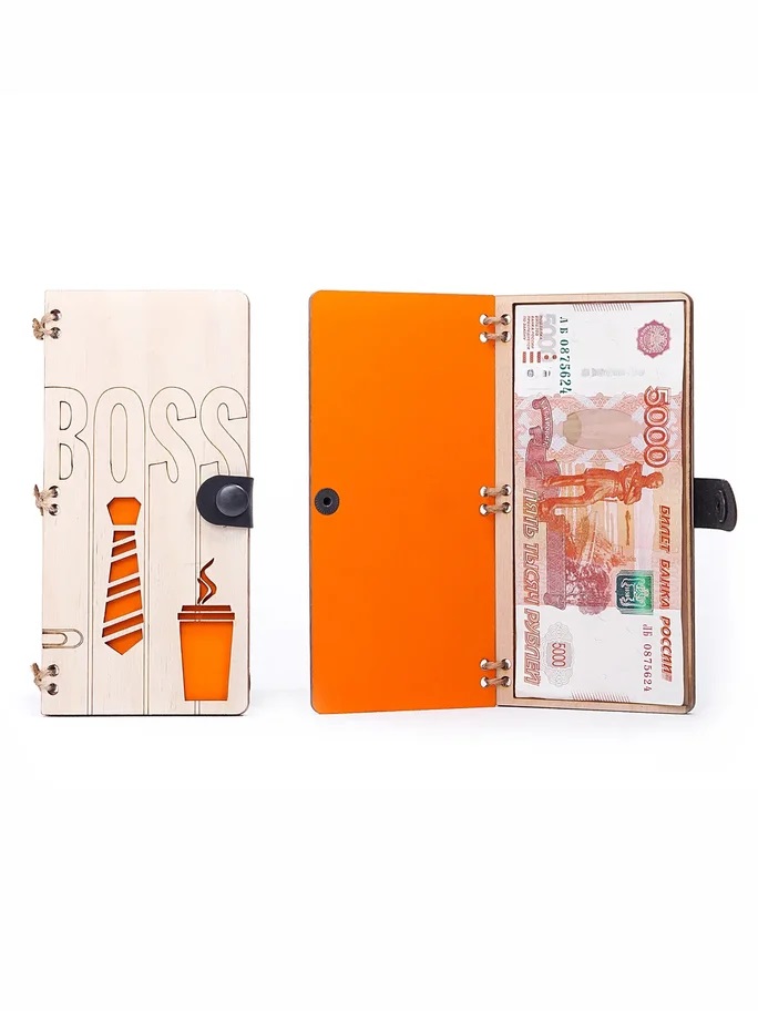 Конверт деревянный "BOSS" оранжевая 16,5*8*1 см