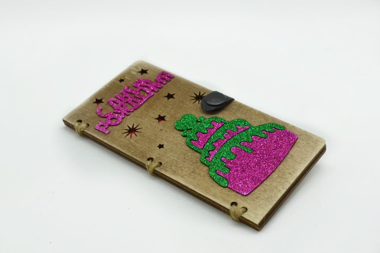 Конверт деревянный " Глитерный торт сиреневый с серебром "