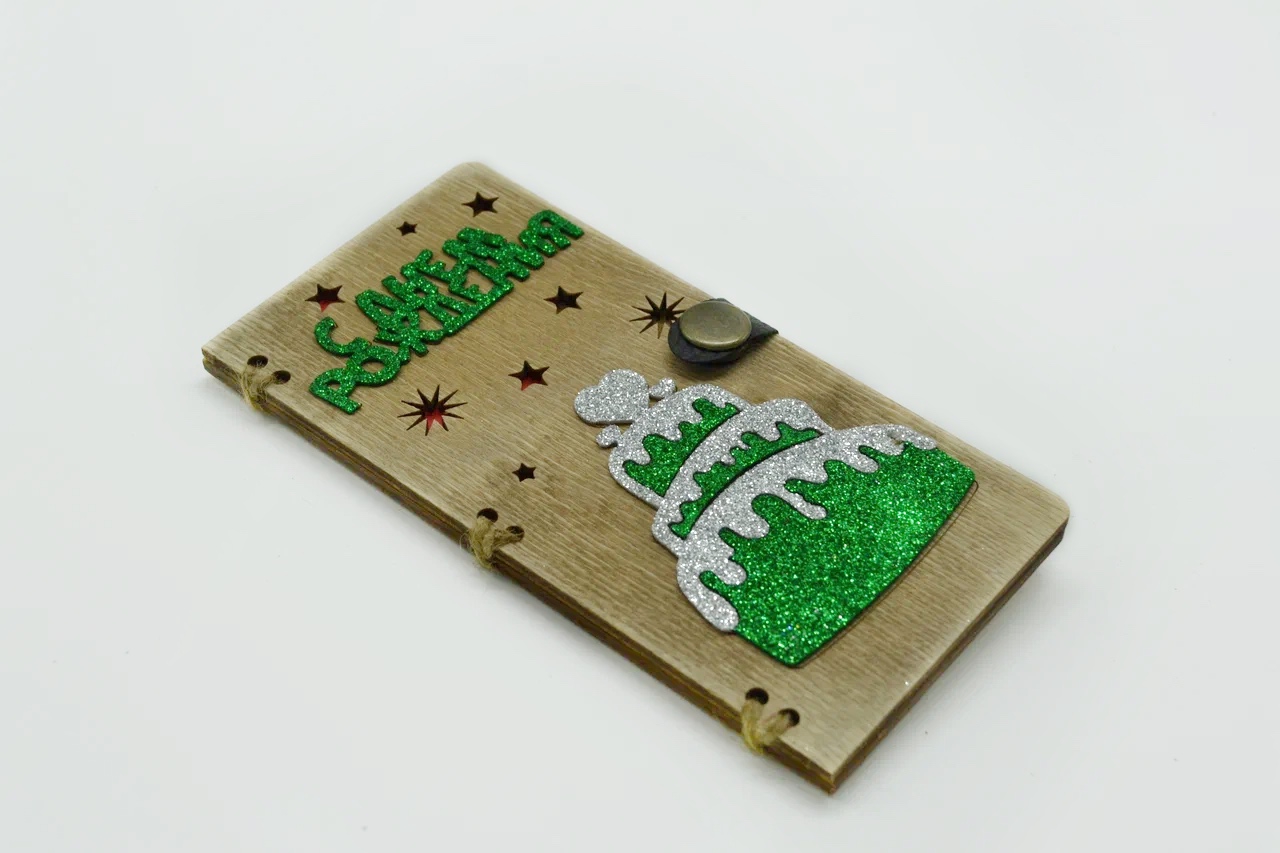 Конверт деревянный " Глитерный торт с зеленый с серебром "