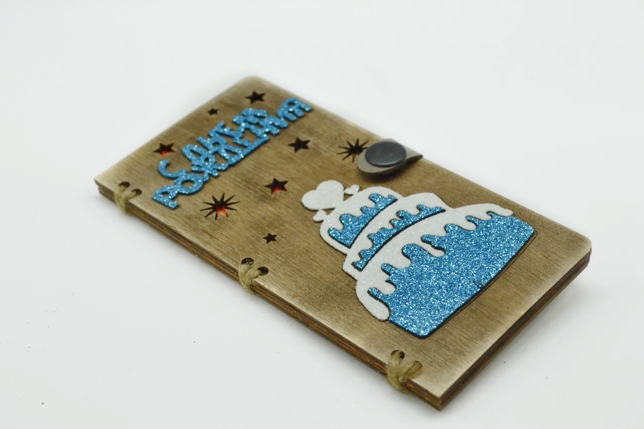 Конверт деревянный " Глитерный торт голубой с белым "